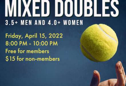 Read moreThis Friday, April 15th – fun, social tennis. For Men, level 3.5 and higher, and for Women 4.0 and higher.